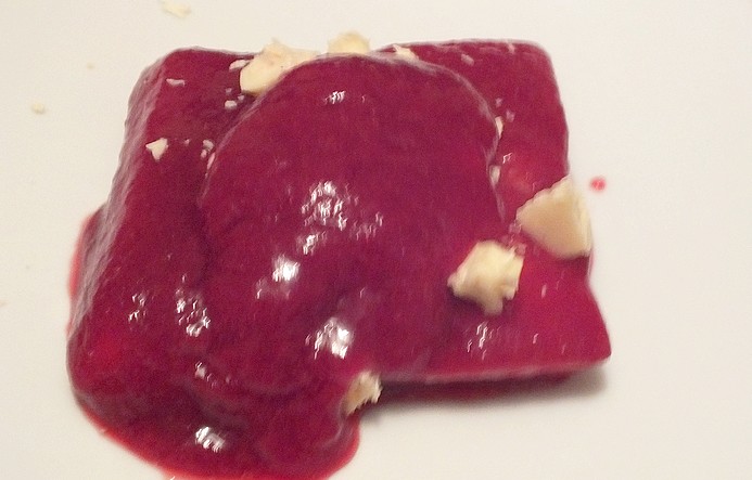 J'ose à peine vous montrer la photo du dessert tellement elle est moche. Mais c'était très bon. Vous aviez des financiers qui avaient macéré quelques heures dans un coulis de pêche de vigne, avec dessus un sorbet à la pêche de vigne (voir ICI le process pour faire les sorbets) et du chocolat blanc aux noisettes et céréales croustillantes.